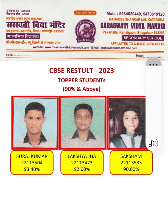 MSLK SVM (Saraswati Vidya Mandir) , Pakartalla, Kahalgaon is run and governed by Shishu Shiksha Prabandh Samiti and dedicated for the sake of the development of National Education System to build up the young generations charged with Bhartiya Sanskriti and Patriotism.